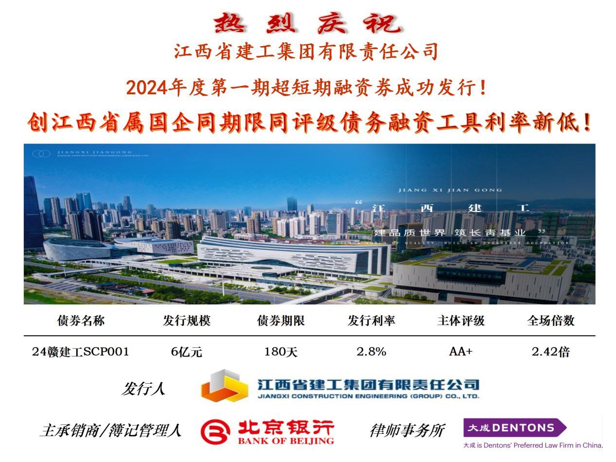 开门红!江西建工主体AA+票据成功发行,利率再创新低
