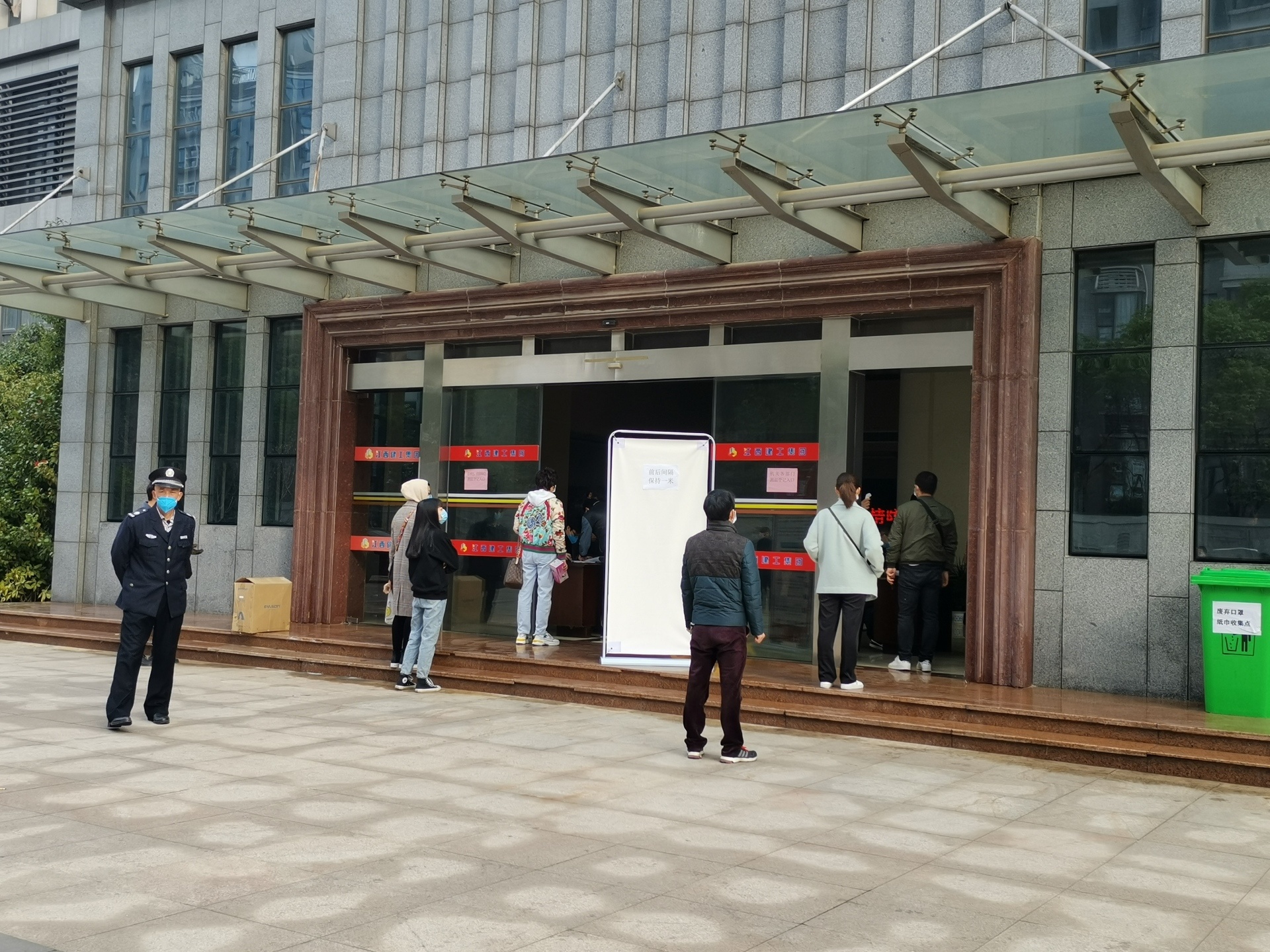 “机关各部门的请往这边进,各总承包公司请走另一侧,大家注意保持间距……”