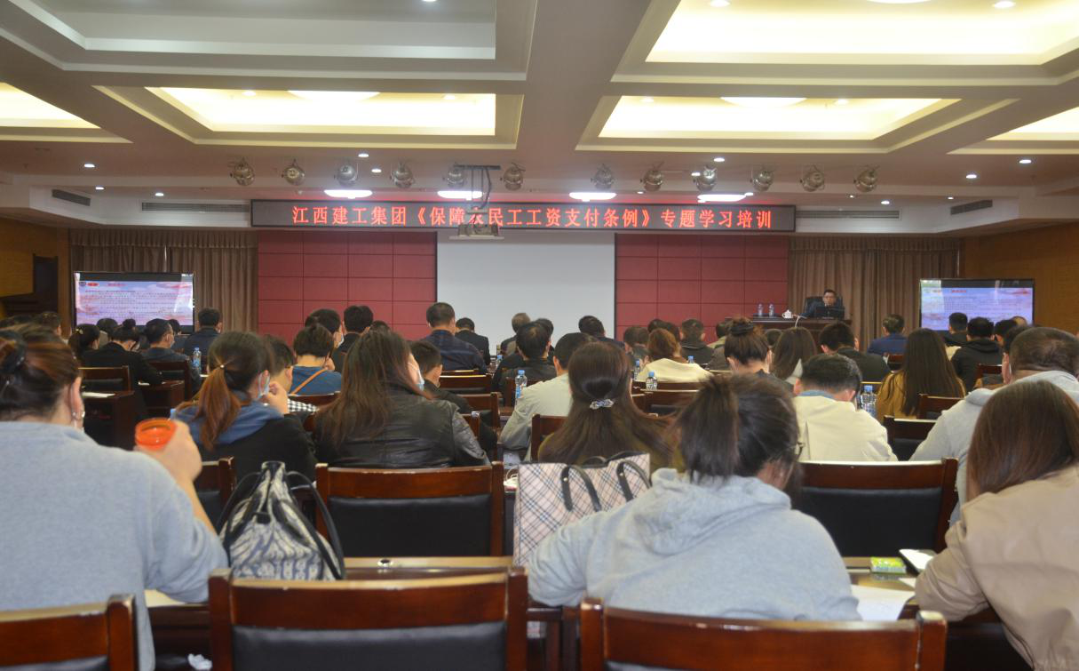 为进一步推进《保障农民工工资支付条例》的贯彻落实,切实维护农民工合法权益。10月30日,集团公司党委在3楼多功能会议室举办《保障农民工工资支付条例》专题学习培训班,特邀江西省劳动监察总队长高丙军进行授课,此次培训由集团党委副书记、董事缪圣纲主持。人力资源处、企业管理处、工程管理处负责人,集团公司各成员企业总经理、分管领导,集团本部各经营单位负责人共160余人参加会议。